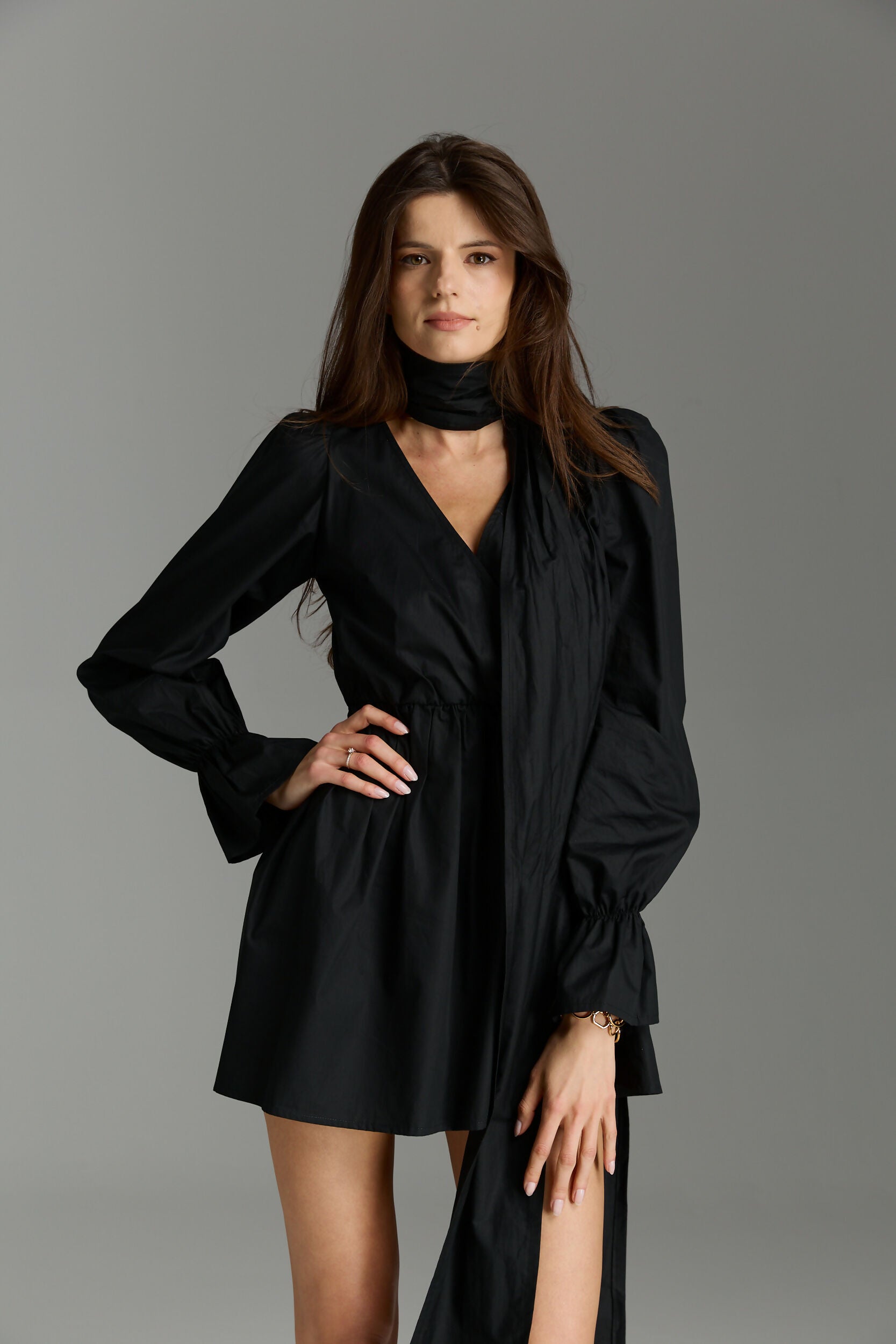 W tej sukience rolę główną odgrywa tkanina. Wysokiej jakości bawełna użyta w tym projekcie nie tylko sprawia, że jej właścicielka czuje się świetnie, ale również tak wygląda. Dzięki naturalnym właściwościom materiału i konstrukcji sukienki jej spódnica pozostaje rozkloszowana, a rękawy są bufiaste.
