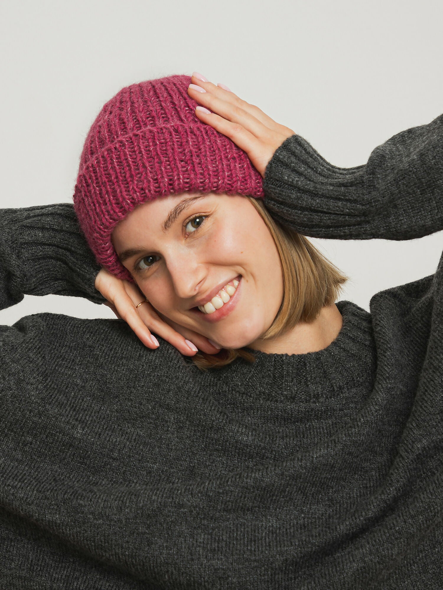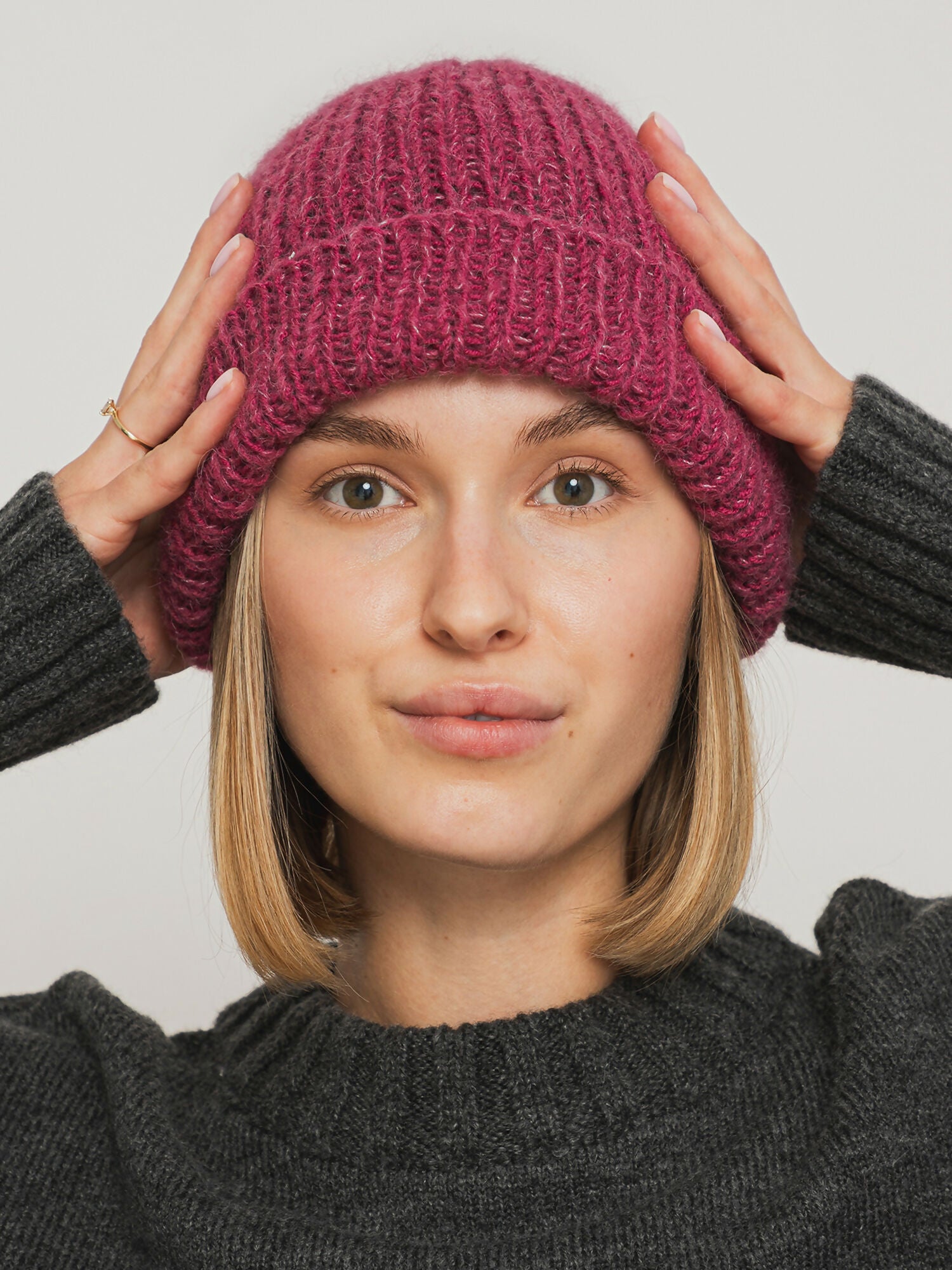 Minimalistyczna czapka o klasycznym kroju, wykonana z wyjątkowo miękkiej i ciepłej mieszanki naturalnych włókien: wełny merino, alpaki i jedwabiu.