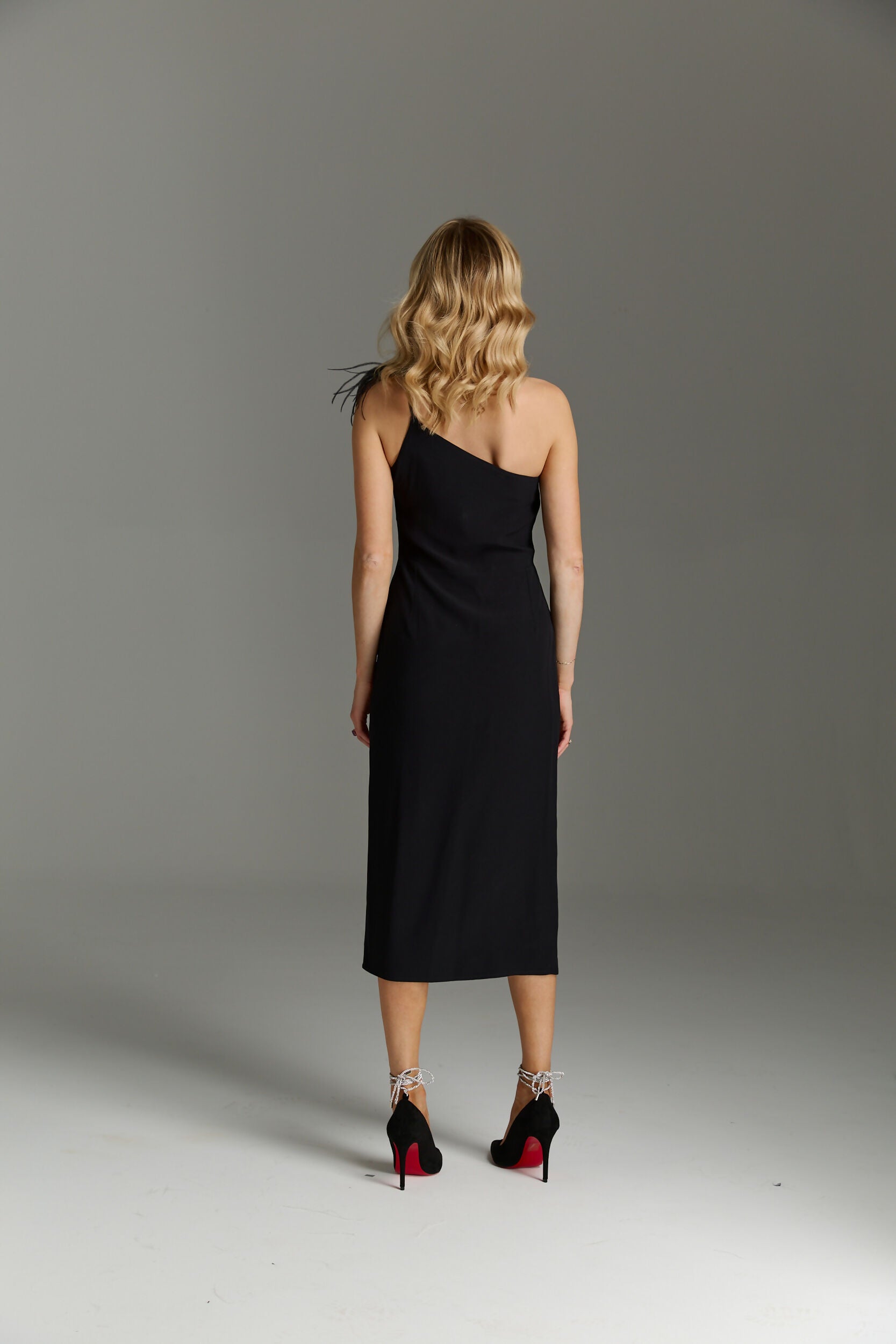 Na ramiączku znajdują się naturalne pióra, które można w każdej chwili odpiąć. W celu umożliwienia prania sukienki w domowych warunkach są one przypinane na ręcznie doszywany zatrzask.