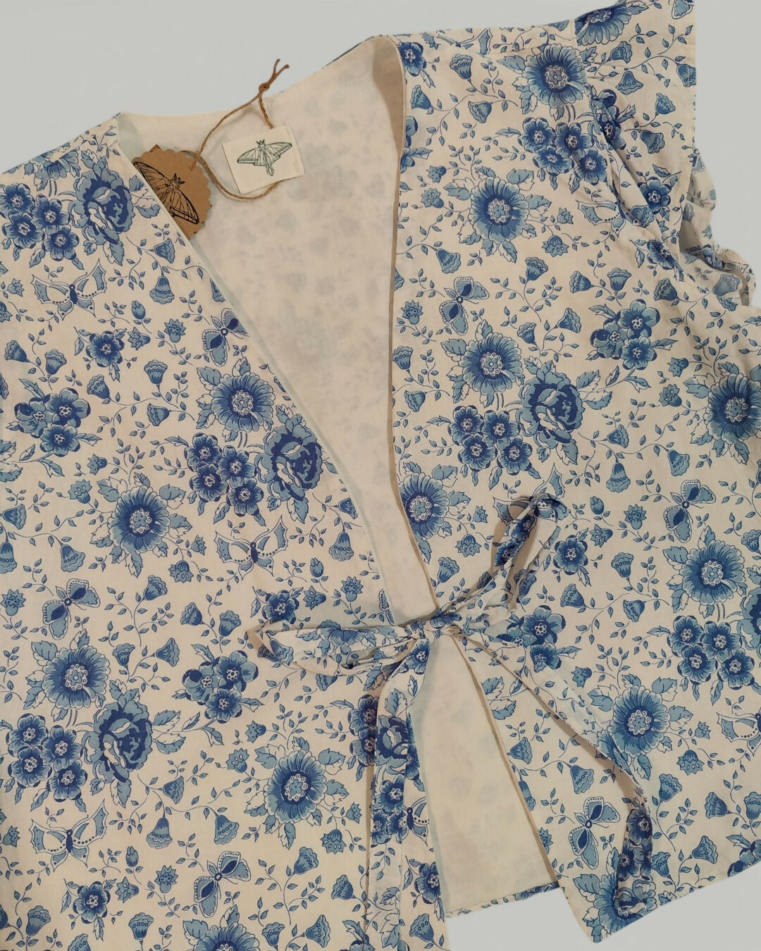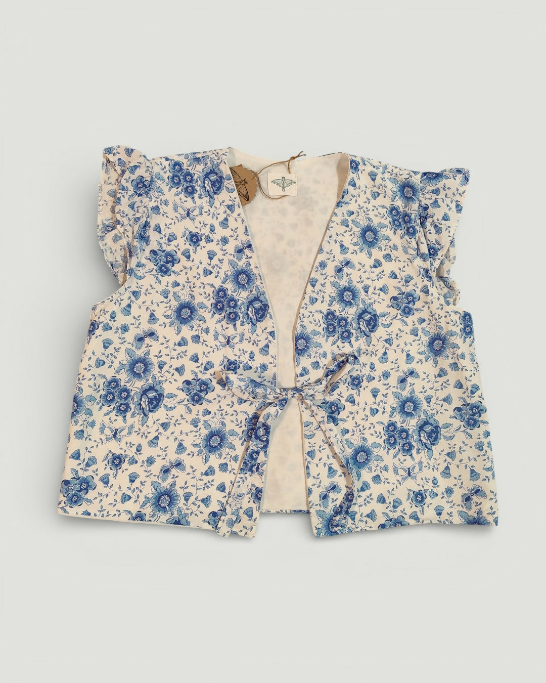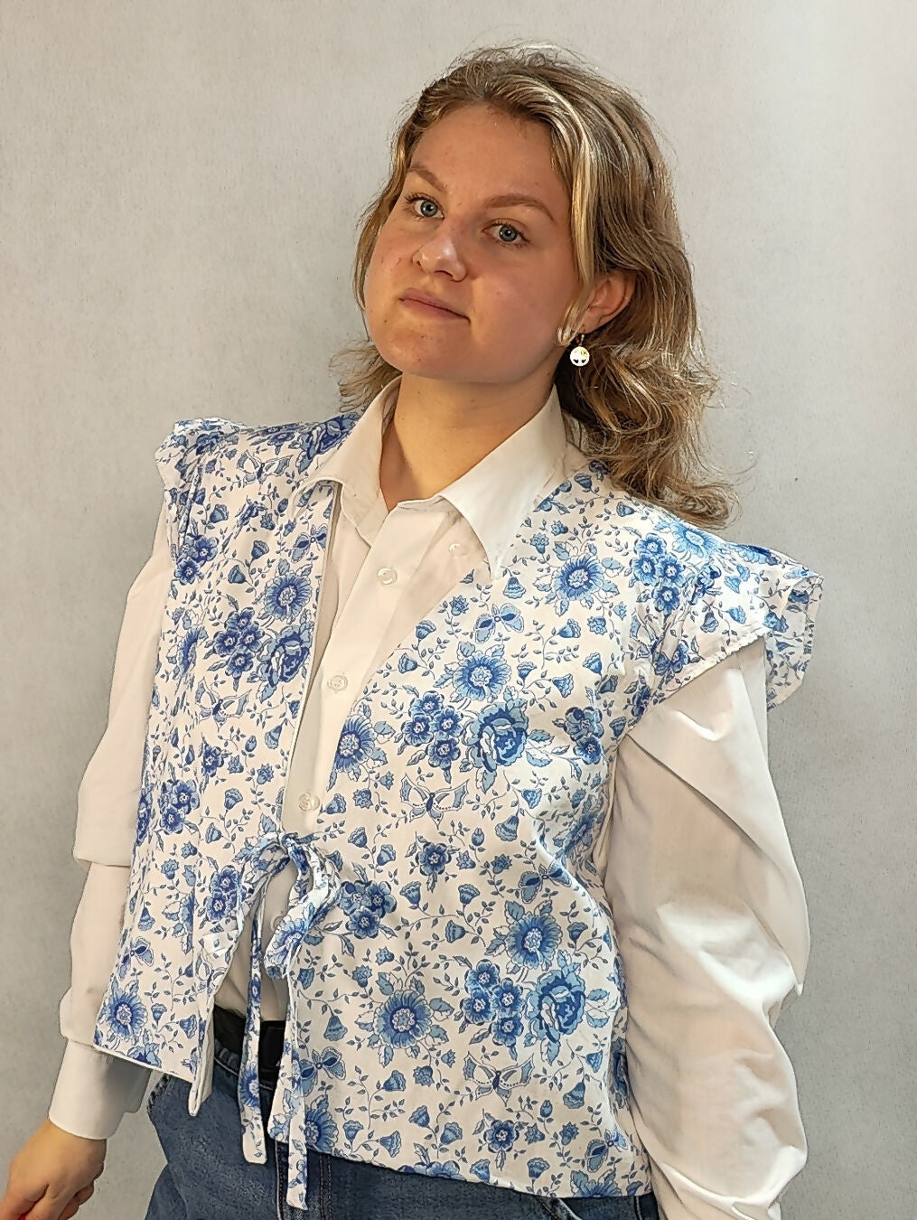 Niebiesko-biała kamizelka w kwiatki