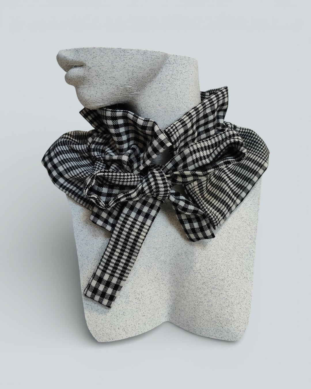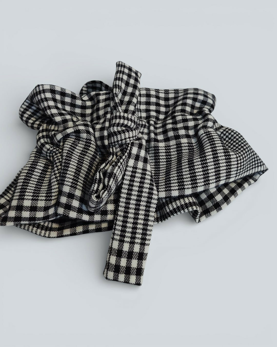 Ozdobny kołnierz wiązany z przodu w czarno-białą kratę